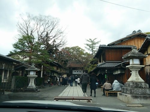 駐車場待ちの間、車内から あぶり餅屋さんの行列を撮りました。