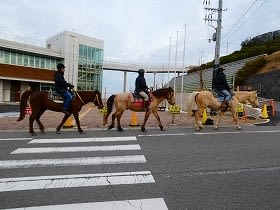 2020-01-31 あわじ花さじき 2020 花・木 「淡路島の旅」 の 最後は 「あわじ花さじき」 兵庫県淡路市楠本 昨年4月に来た時 工事中でしたが、 今回、建物は完成していましたが・・・ オープンしていませんでした。。 アースワークデザインコンテスト で最優秀の 「幸せをよぶライオン」 近くのの乗馬クラブ? の 方が 散歩されてました。